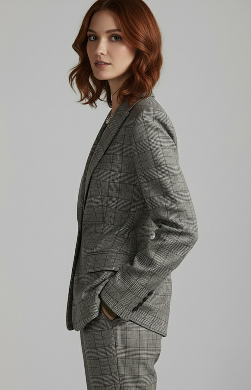 Barbara Bui Ekose Desenli Tek Düğmeli Gri Yün Ceket