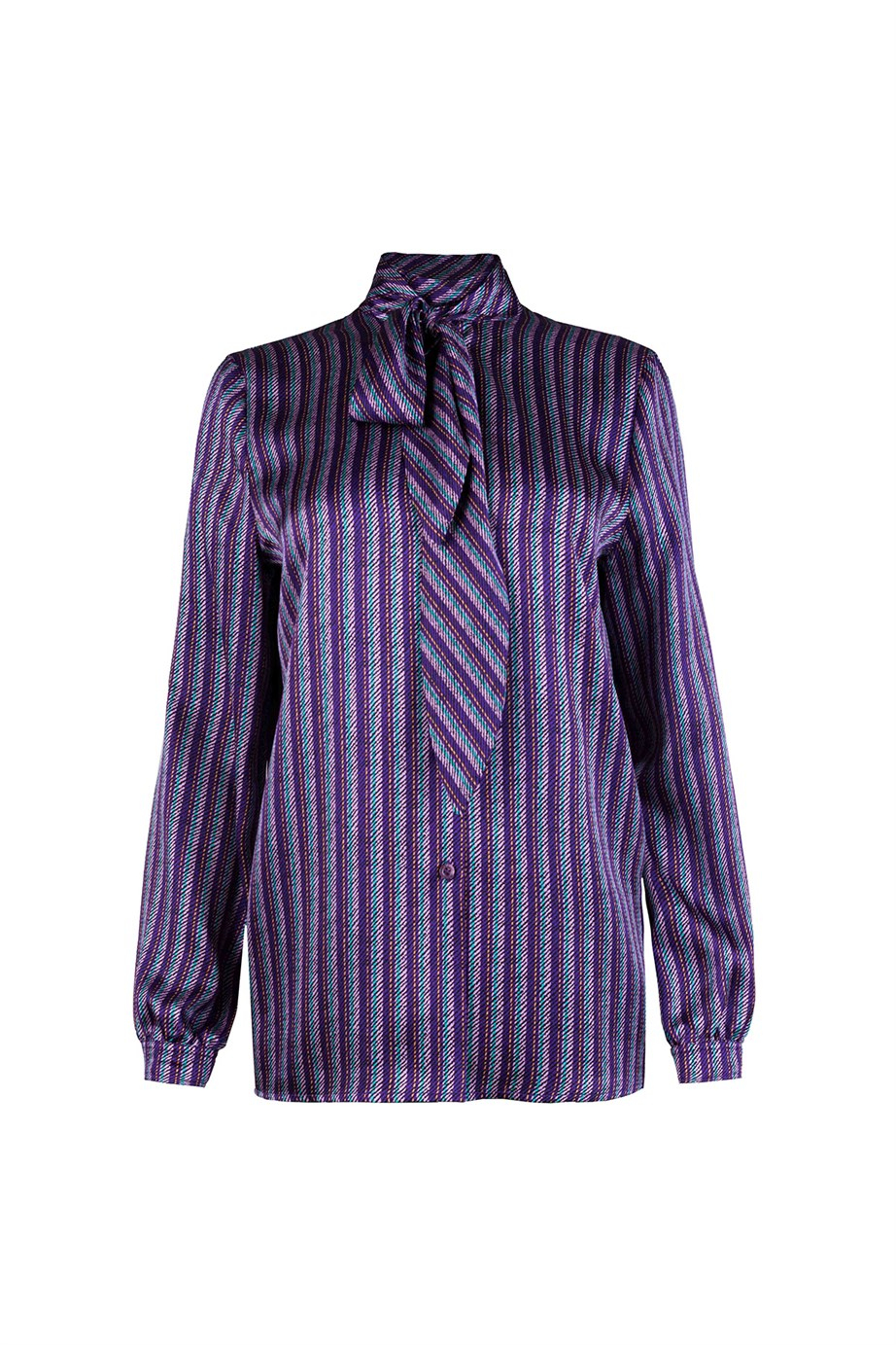 Escada Şal Yaka Çizgili Mor İpek Gömlek (1825027650)