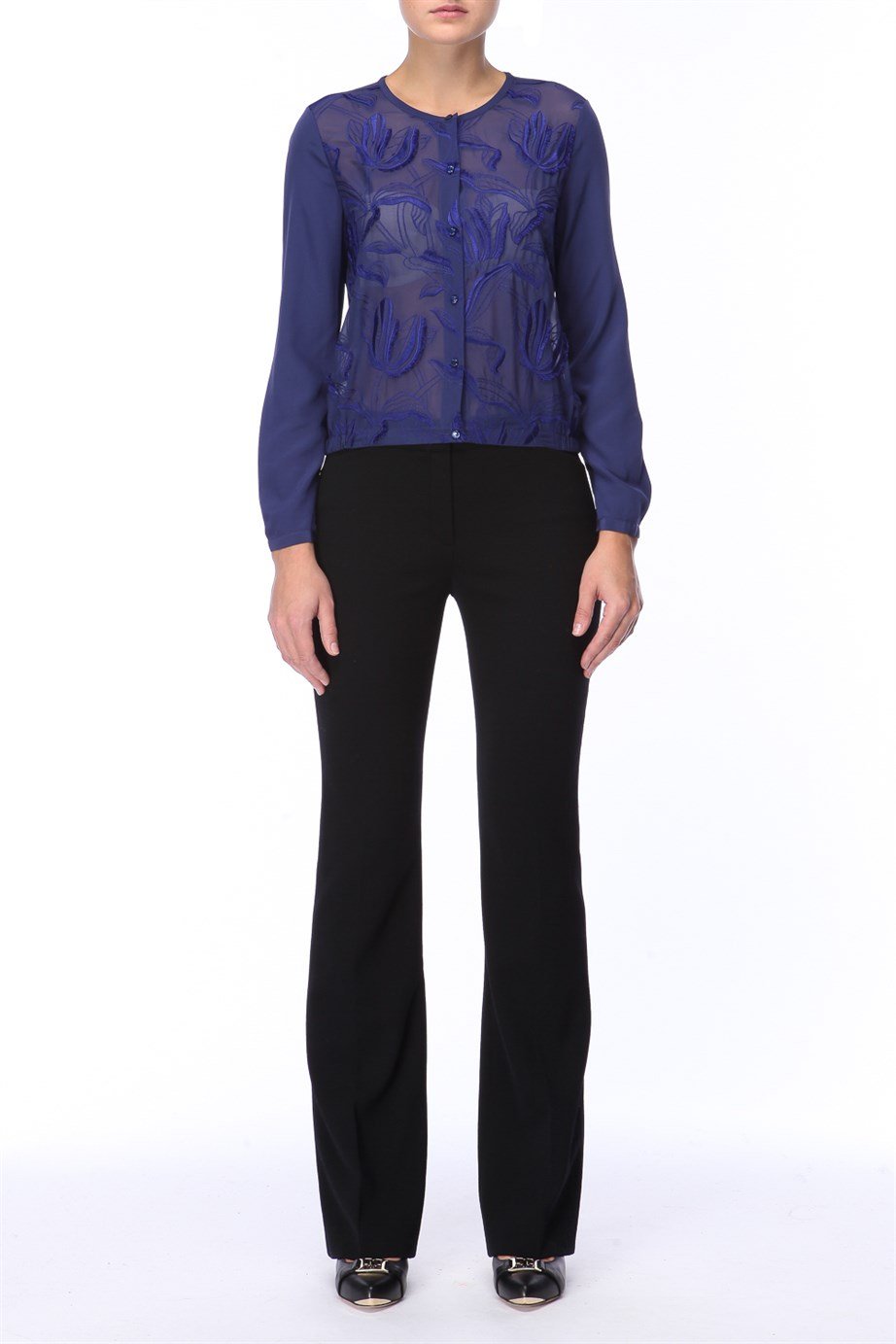 Escada Bisiklet Yaka Desenli Beli Lastikli Mavi İpek Gömlek (1525016510)