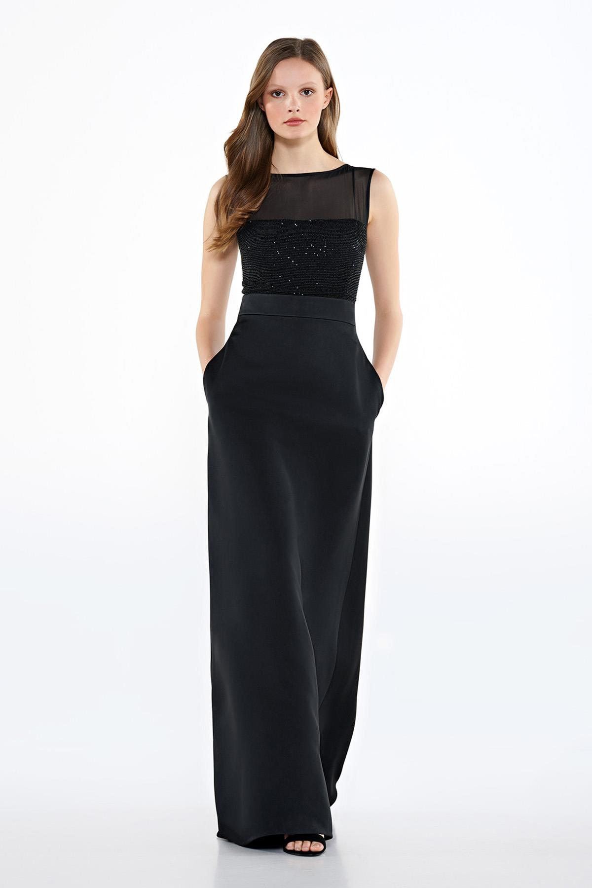 Escada Boncuk İşlemeli Transparan Detaylı Kolsuz Uzun Siyah Gece Elbisesi (1815025732)