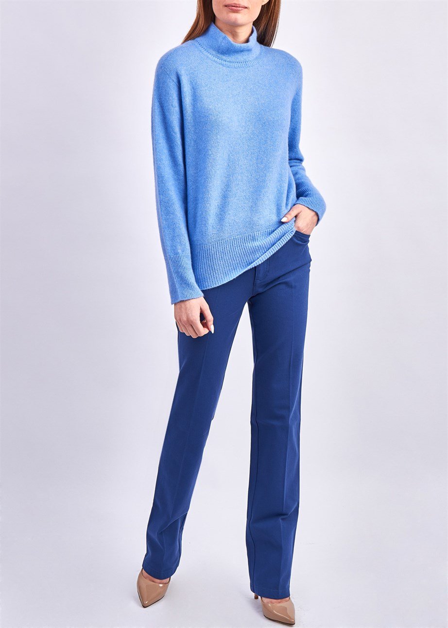 Escada Boru Paça Normal Bel Mavi Pamuklu Pantolon (1825027174)