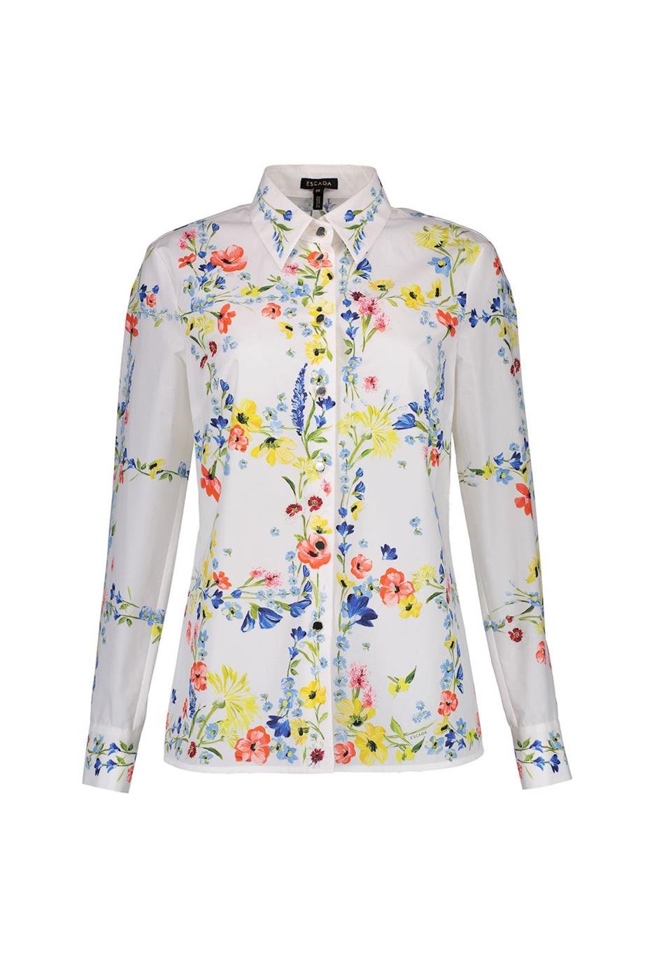 Escada Çiçek Desenli Düğmeli Beyaz Pamuk Gömlek (1825027274)