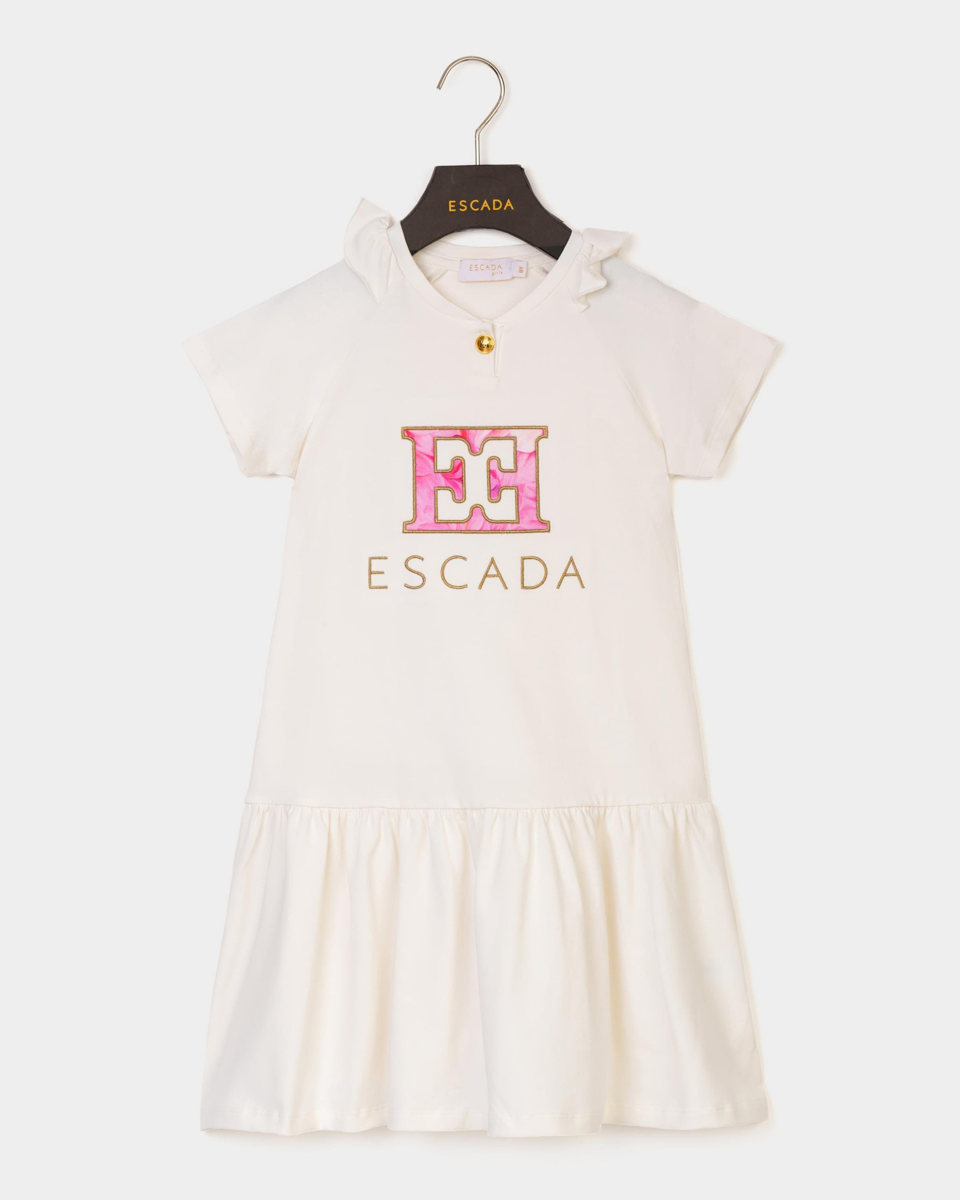 Escada Fırfır Yaka Detaylı Tek Düğmeli Logolu Çocuk Elbise (2410671011)