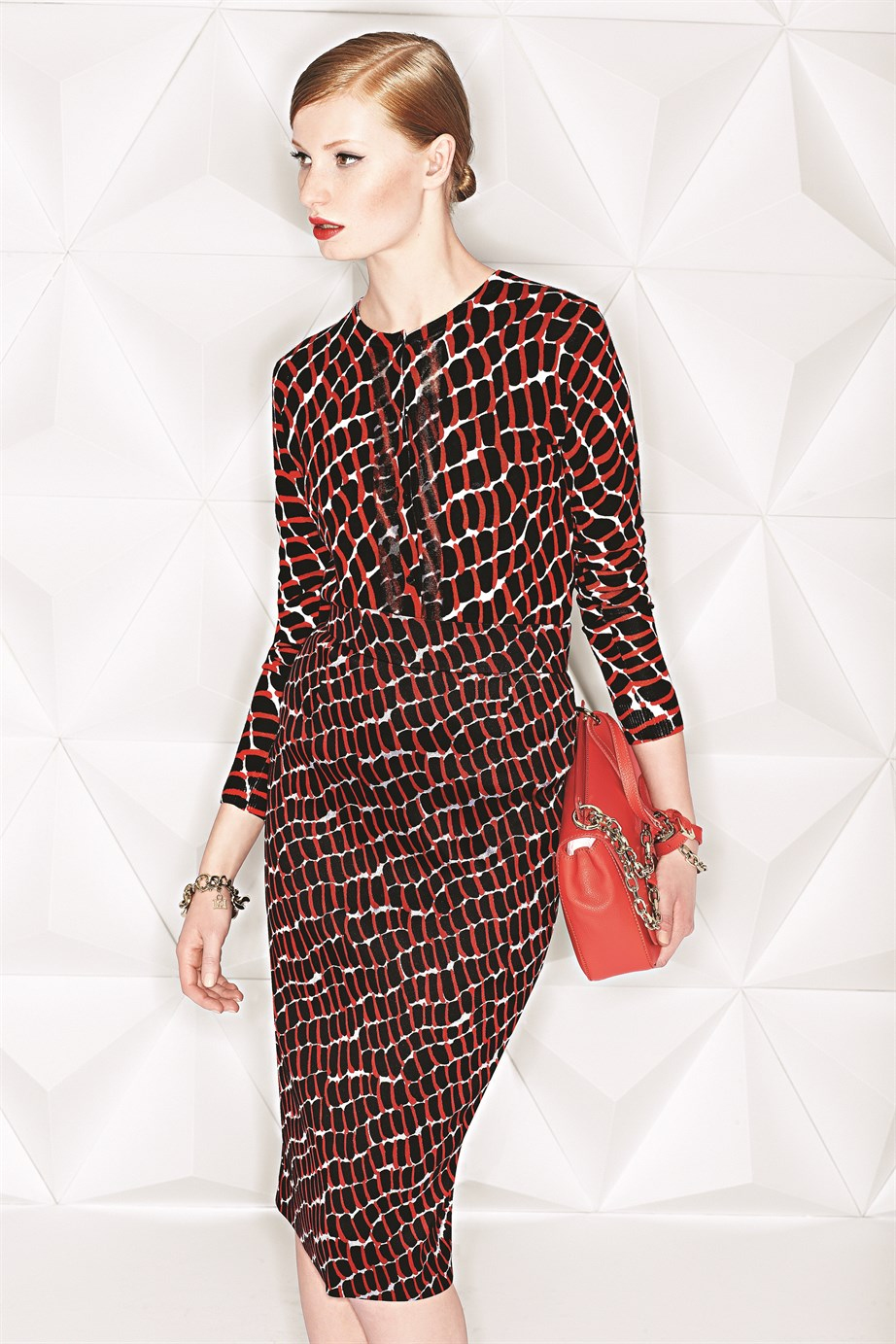 Escada Desenli Bisiklet Yaka Normal Boy Kırmızı Yün ve İpek Hırka (1515014856)