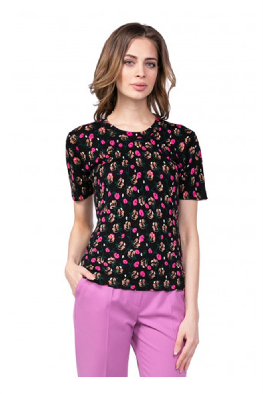 Escada Desenli Kısa Kol Siyah Yün ve İpek Triko Kazak (1925029787)