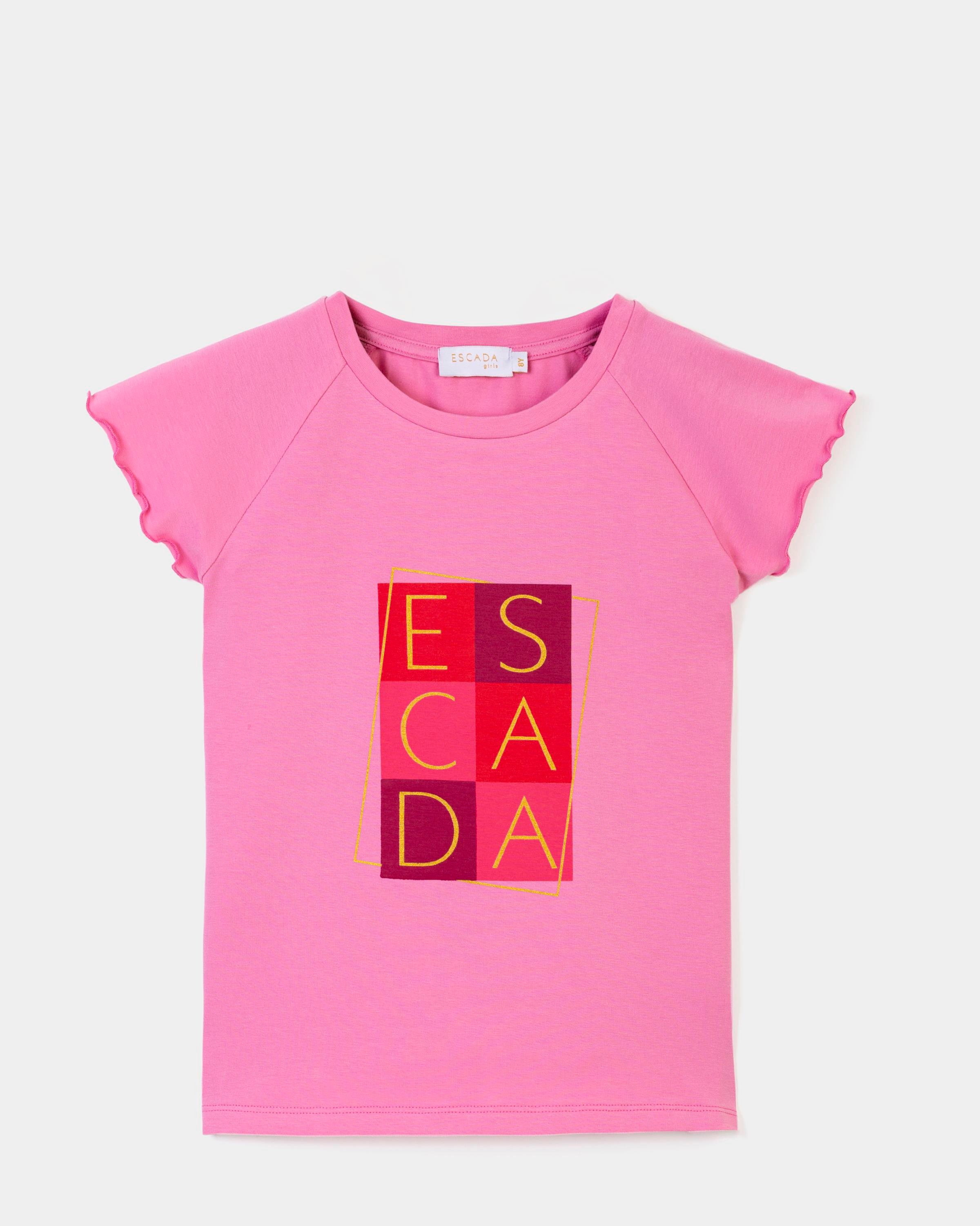 Escada Önü Baskılı Kısa Kol Pembe Çocuk T-shirt (2421071111)