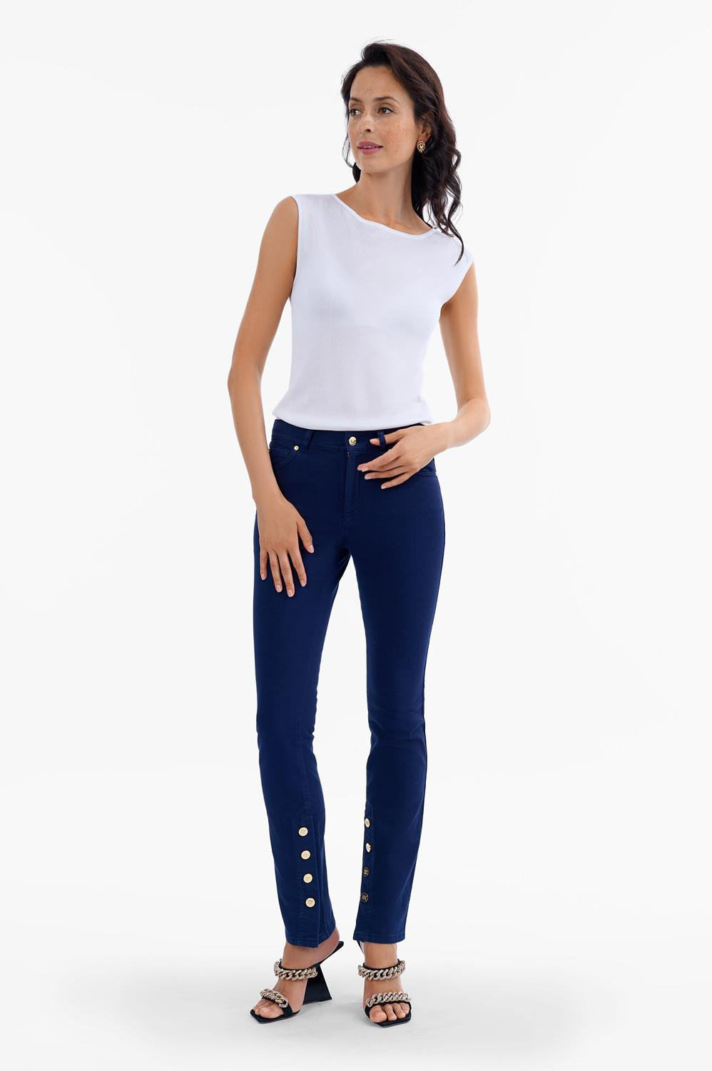Escada Paçası Düğmeli Lacivert Pamuklu Jean Pantolon (1225036931)