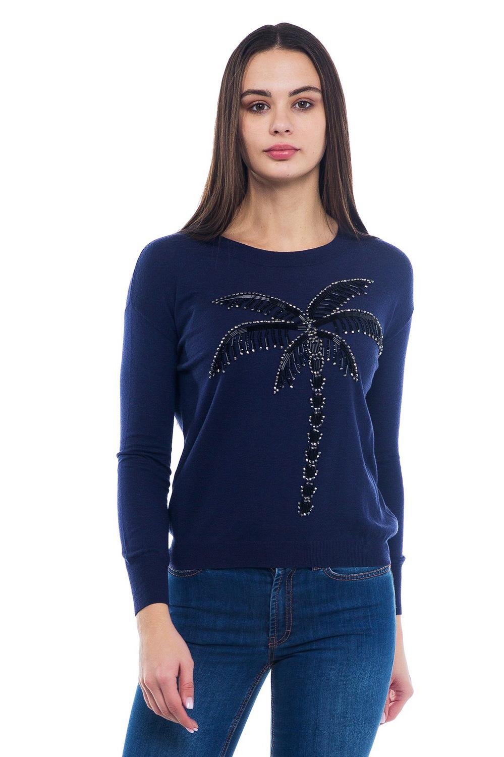 Escada  Palmiye İşlemeli Bisiklet Yaka Yünlü Triko Kazak