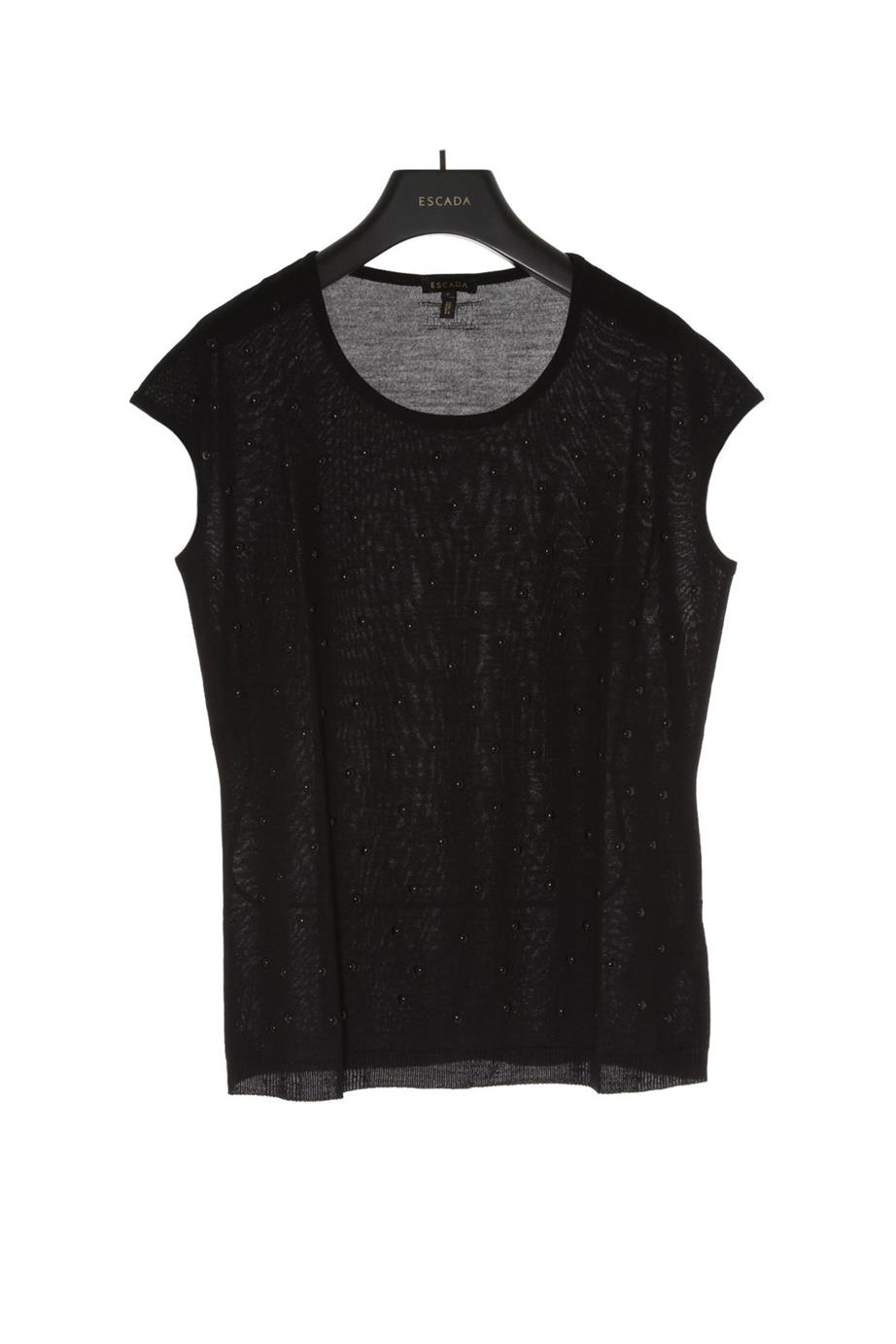 Escada Taş Detaylı Bisiklet Yaka Siyah Yün ve İpek Bluz (1515015686)