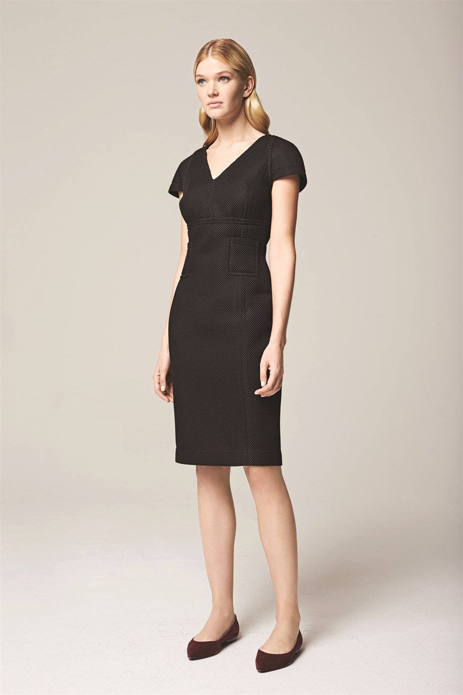 Escada V Yaka Kısa Kol Cep Detaylı Siyah Kalem Elbise (1615018692)