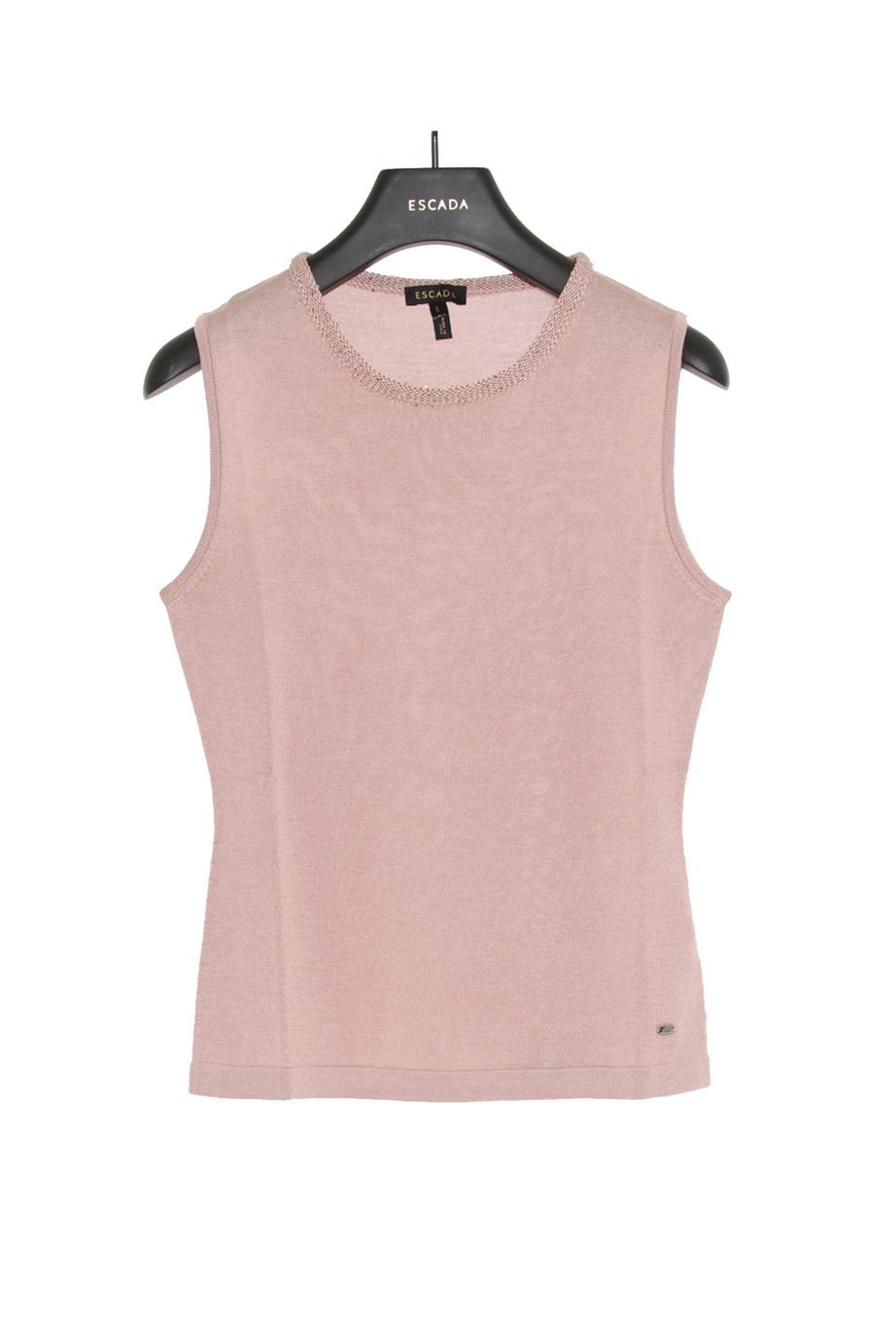 Escada Yaka Pul İşlemeli Kolsuz Pudra Pamuk ve İpek Triko Kazak (1525016590)
