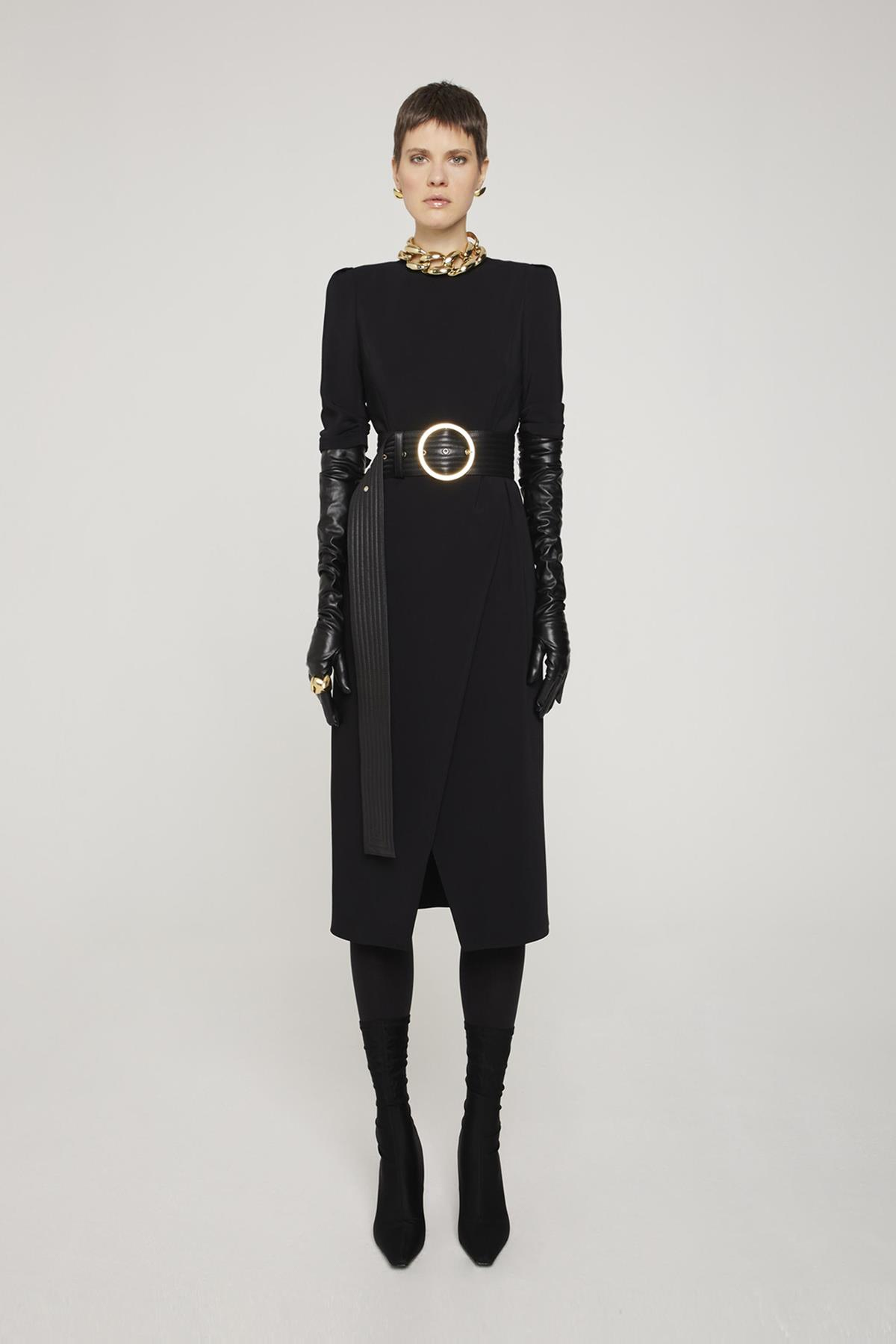 Escada Yarım Kol Kemerli Midi Boy Siyah Kruvaze Elbise (1125035869)